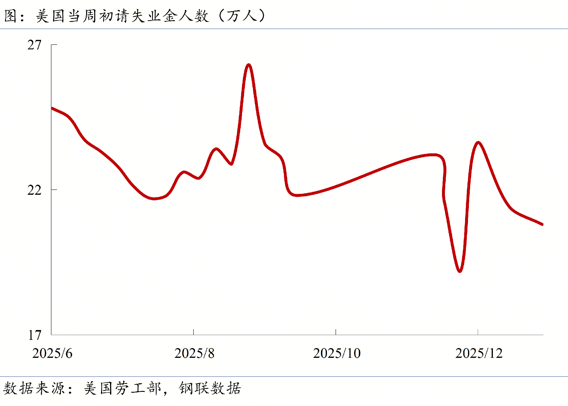 ◎美國勞工局最新數(shù)據(jù)顯示,截至2026年1月3日當(dāng)周,美國初請(qǐng)失業(yè)金人數(shù)為?20.8萬人?,低于市場(chǎng)預(yù)期的21萬人,仍處于歷史低位區(qū)間。