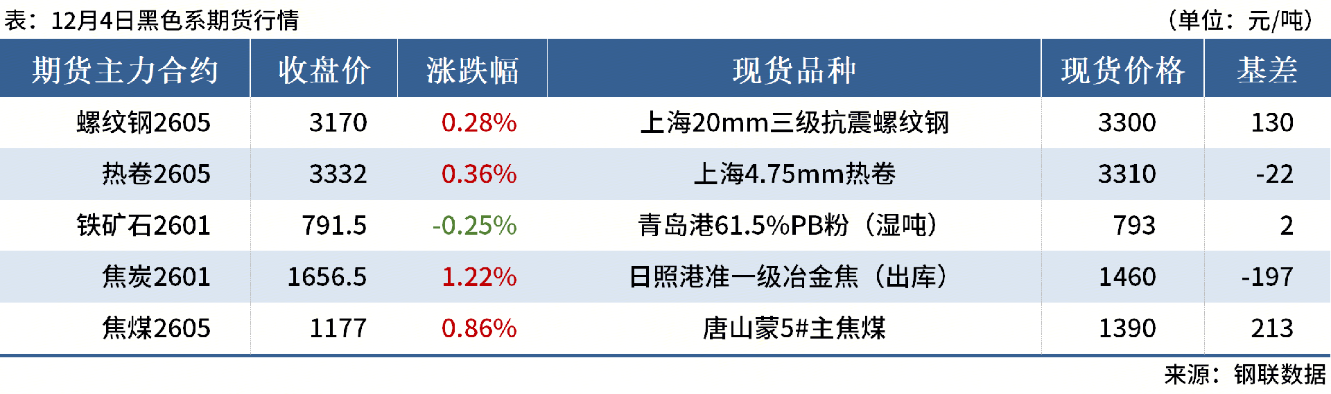 ◎12月4日,全國(guó)主港鐵礦石成交126.60萬(wàn)噸,環(huán)比增6.3%;237家主流貿(mào)易商建筑鋼材成交9.39萬(wàn)噸,環(huán)比增4.5%。